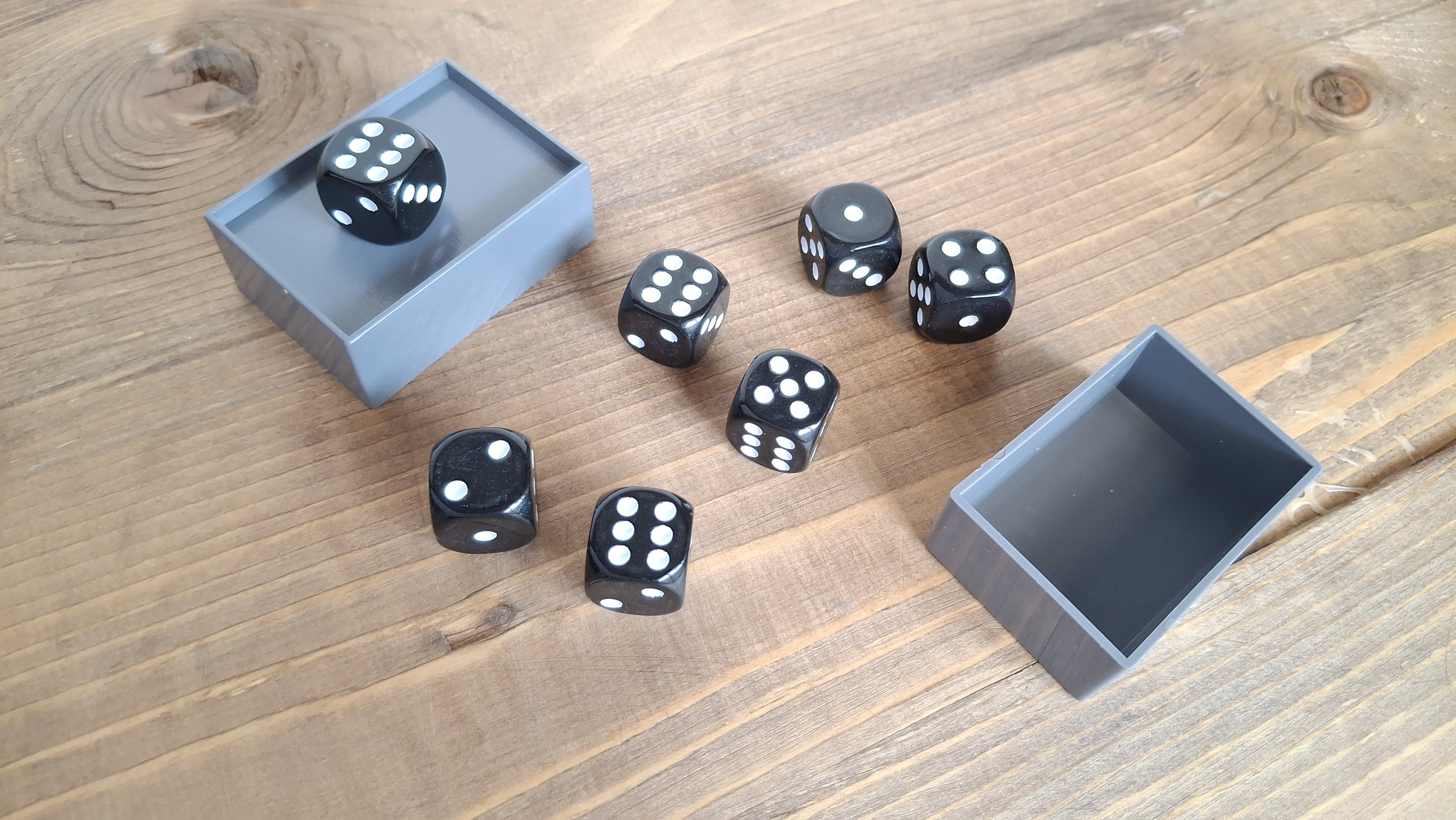 شعبده باز درب جعبه را می بندد و تاس را روی جعبه رها میکند تا بصورت تصادفی شماره ای از تاس انتخاب شود