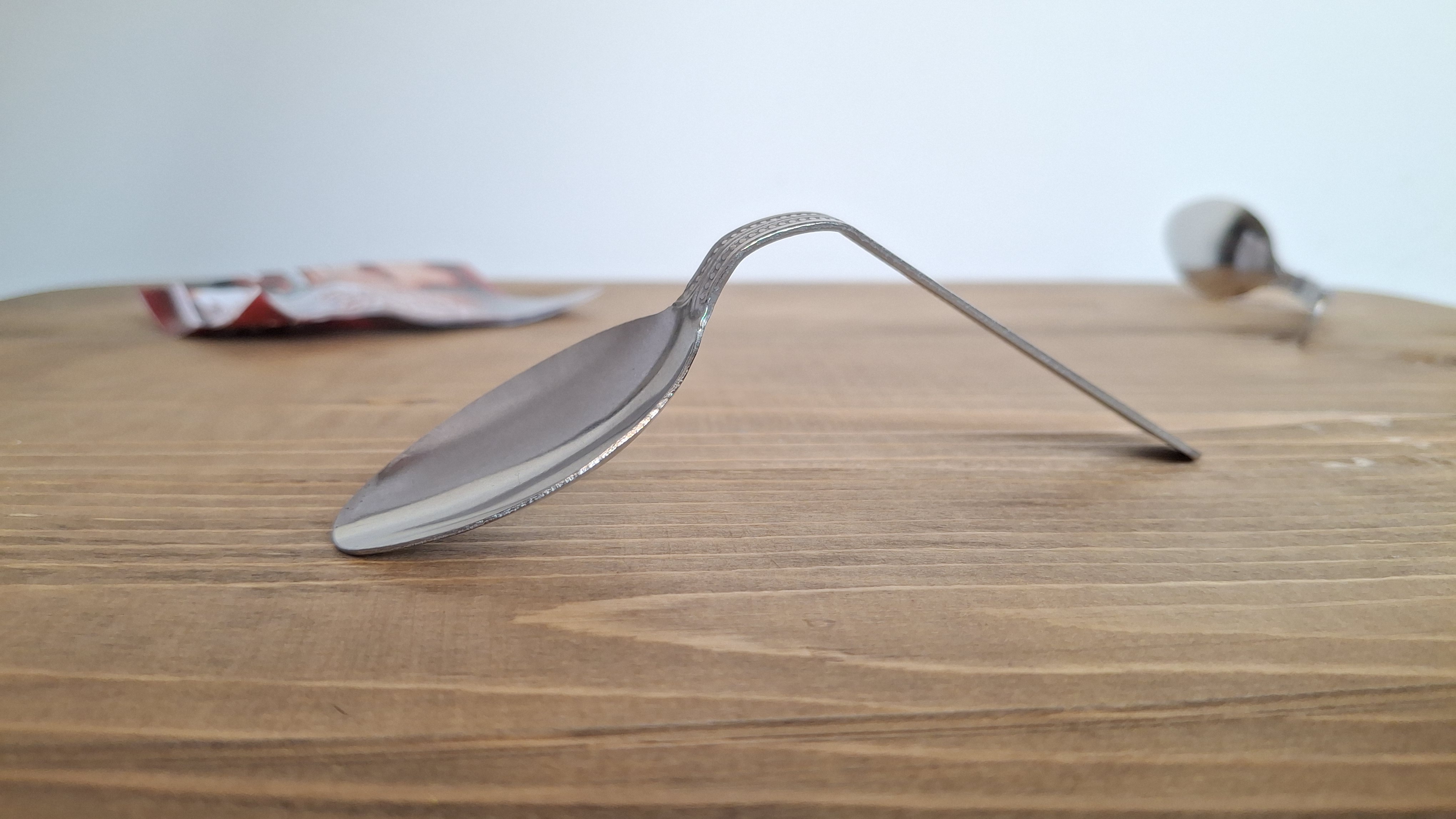 شعبده باز خیره به قاشق فلزی کارش را شروع میکند, او پس از چند ثانیه کمی قاشق را خم می کند در همین زمان بسیاری از تماشاگران شگفت زده کار شعبده باز را تماشا می کنند.