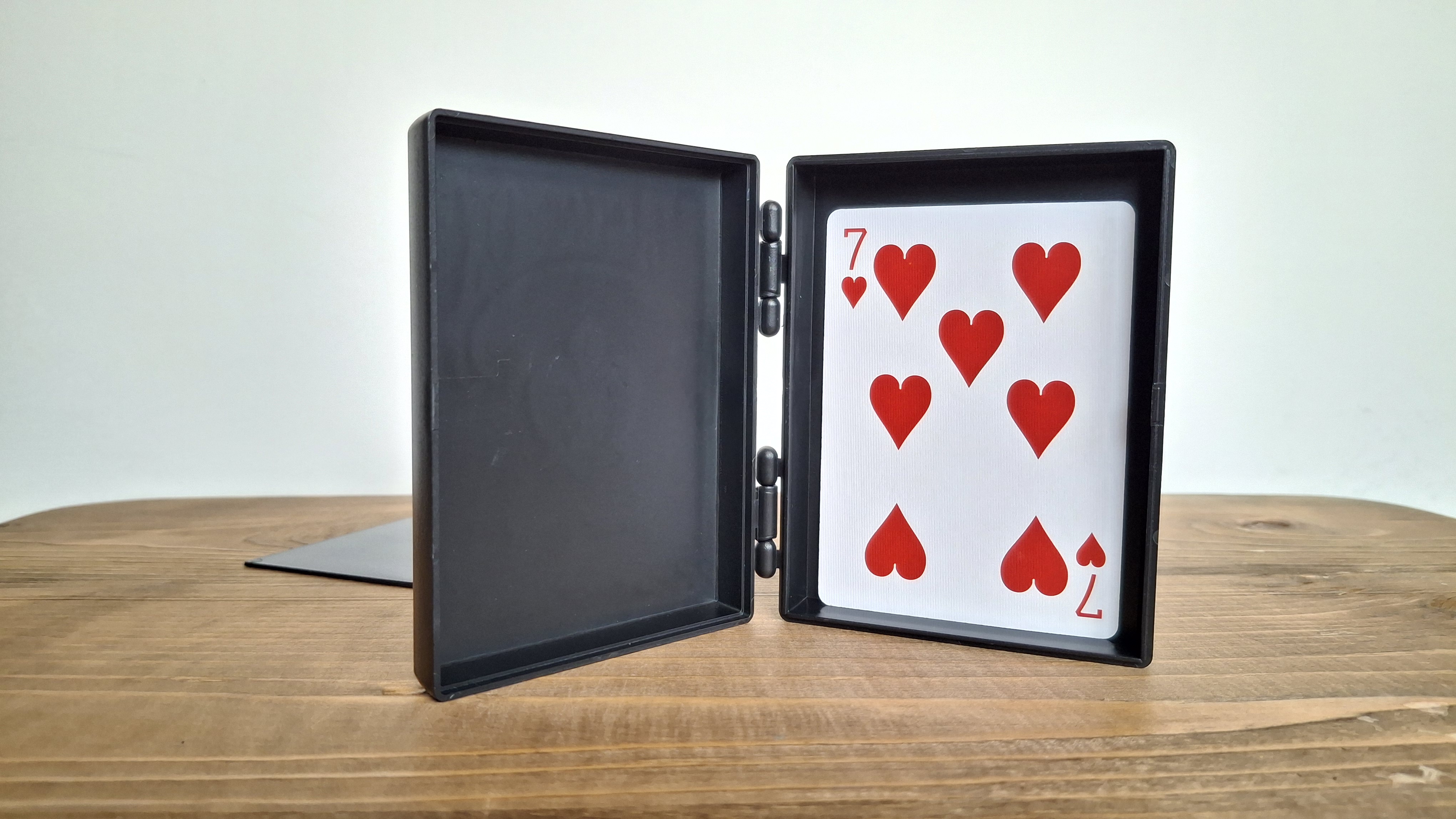 زمانی که شعبده باز درب جعبه را باز میکند کارت ترمیم شده و خبری از پارگی روی کارت دیده نمی شود